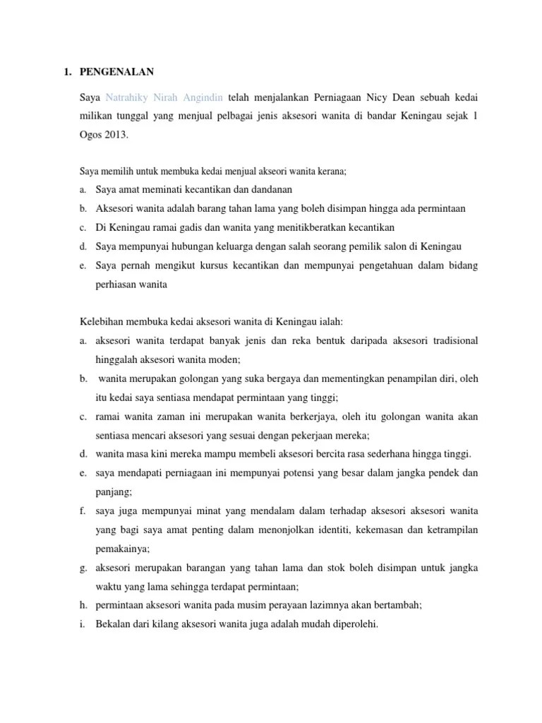 Perniagaan ini berbentuk milikan tunggal. Latar belakang pemilik/ ahli kongsi/ pemohon · #5: Pengenalan perniagaan kerja kursus prinsip perakaunan tingkatan 5 2018. Contoh kerja kursus perniagaan tingkatan 5 2018 daripada maximus.